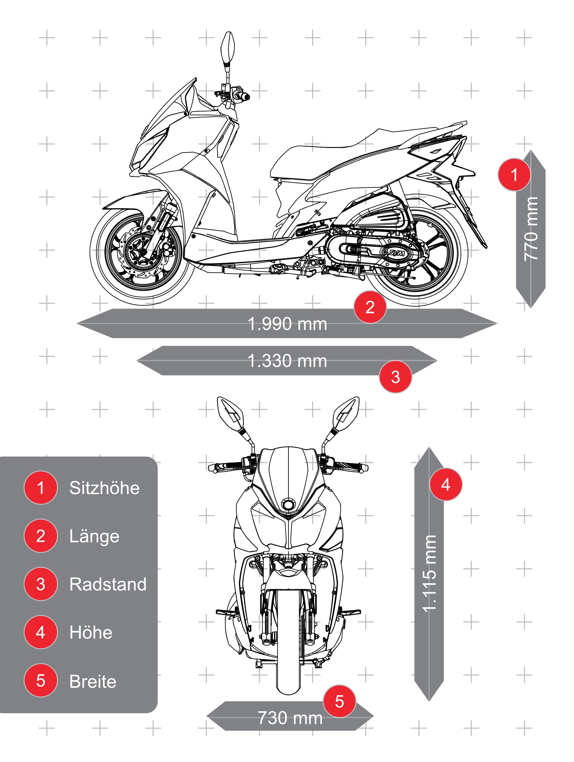 Sie möchten lange Freude an Ihrem SYM-Scooter haben? Wir geben unser bestes und verbauen daher nur hochwertige, strenggeprüfte Teile. Dennoch verschleißt auch mal das beste Bauteil. Bringen Sie daher Ihr Modell regelmäßig zu Ihrem SYM-Fachhändler zur Wartung. Dieser garantiert mit umfangreicher Fachkenntnis und originalen Ersatzteile, dass Sie nicht nur lange Freude an Ihrem Modell haben, sondern auch immer sicher unterwegs sind.